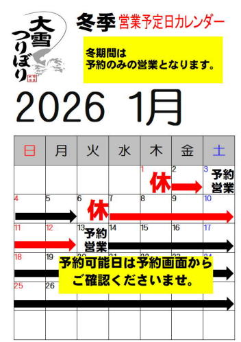 ※冬季営業は釣りのみのコースはありませんので、