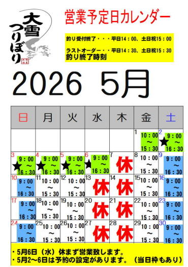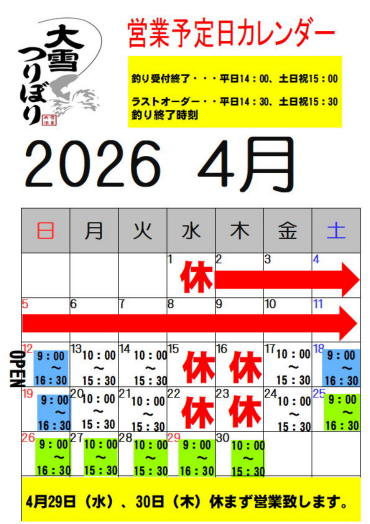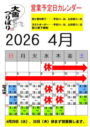 【営業予定カレンダー】